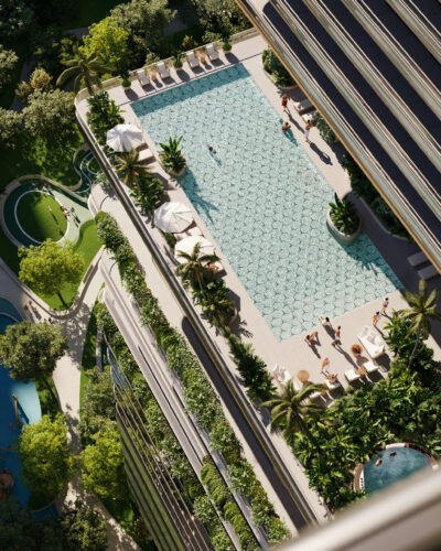 Amenidades de clase mundial: Más de 130,000 sqft que incluyen piscinas en varios niveles, spa de bienestar y simulador de F1.